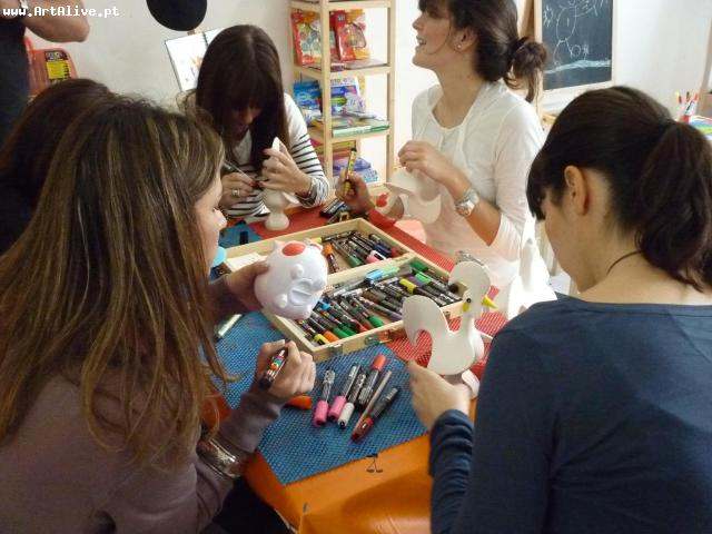 A Carla e as sua Amigas vieram ao nosso espaço fazer a Despedida de Solteira com uma sessão "mista" Art Alive, pintaram telas, porco mealheiro e Galos de Barcelos...