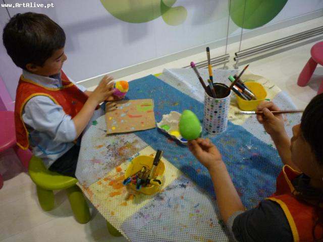 Aqui está o resultado do dia 8 de Abril, onde se pintaram muitos Ovos e Coelhos.