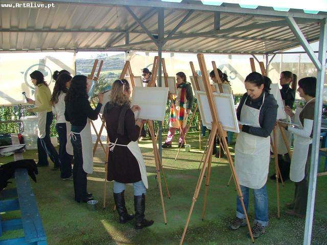 Uma tarde bem passada no Campo Aberto, a quem agradecemos o espaço. Um Grupo animado e divertido proporcionou à Sara uma sessão Art Alive. Cada participante levou a sua Tela Original e Única, no final uma Tela Colectiva foi pintada, para oferecer à Sara.
