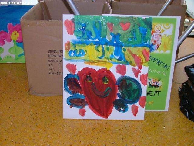 Todos pintaram e levaram a tela consigo, para oferecer no Dia do Pai!