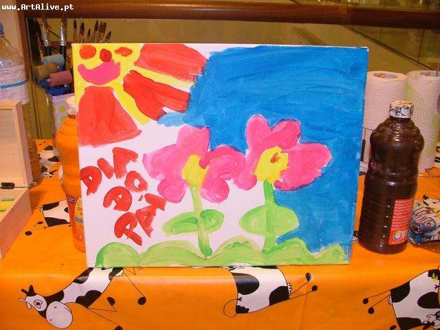 Todos pintaram e levaram a tela consigo, para oferecer no Dia do Pai!