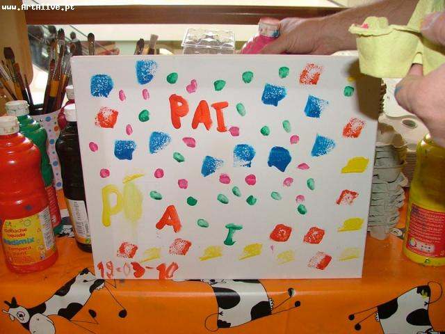 Todos pintaram e levaram a tela consigo, para oferecer no Dia do Pai!