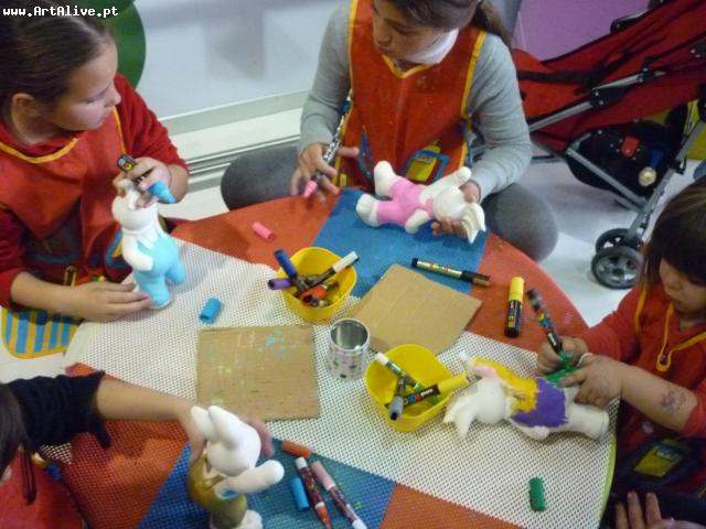 Aqui está o resultado do dia 4 de Abril, onde se pintaram muitos Coelhos.