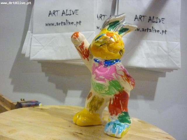Aqui está o resultado do dia 4 de Abril, onde se pintaram muitos Coelhos.