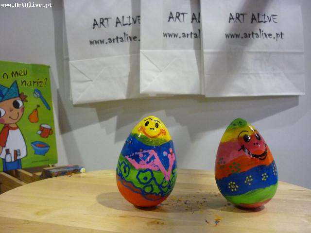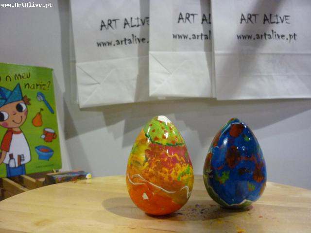 Aqui está o resultado do dia 5 de Abril, onde se pintaram muitos Ovos.