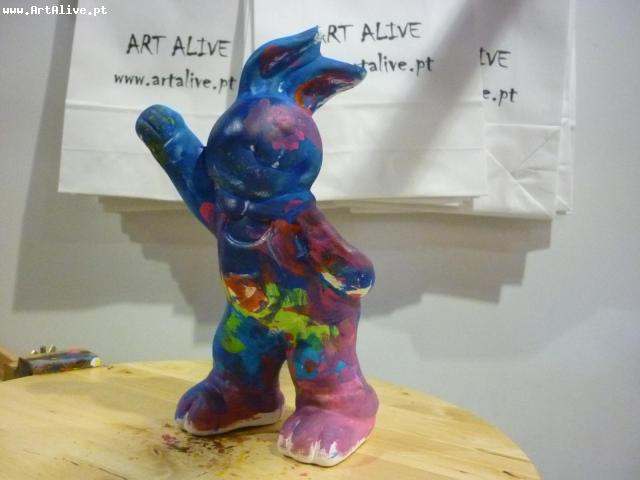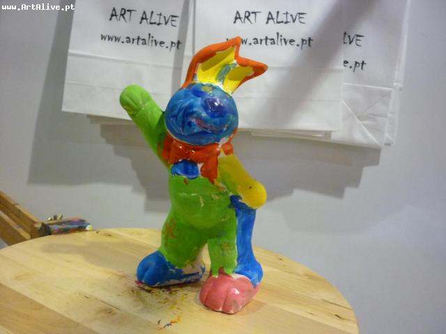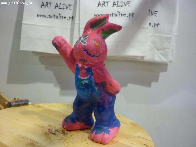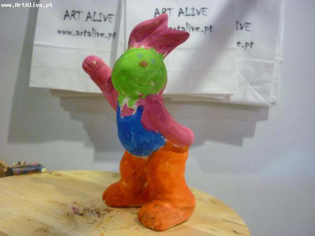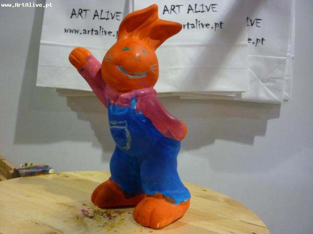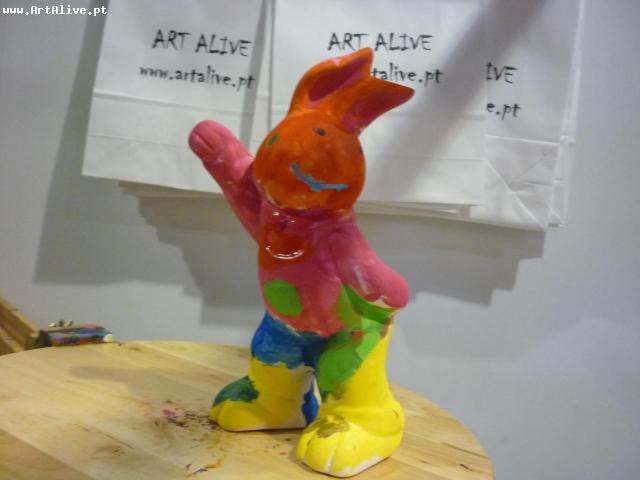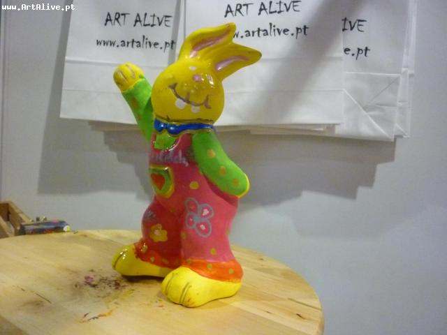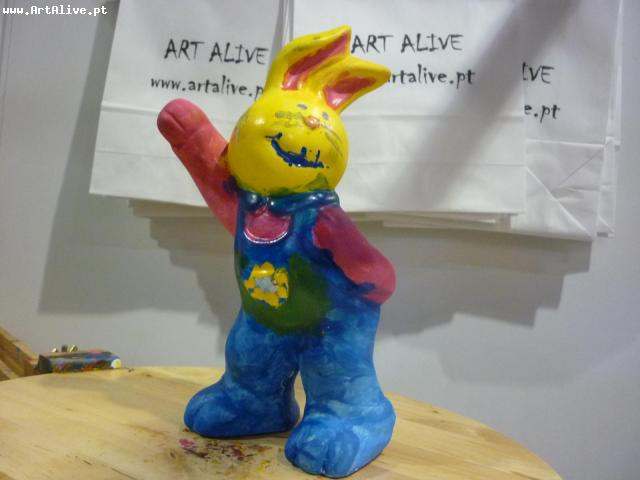 Aqui está o resultado do dia 6 de Abril, onde se pintaram muitos Coelhos.